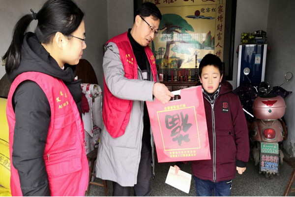 陳主任親切地和他們交談,詢問他們在學習和生活上是否有困難,有困難要和政府反映,再窮不能窮教育,再苦不能苦孩子,再困難也要讓他們有學上。交談結束陳主任給他們送上了慰問金和春聯,叮囑孩子們要好好學習,有了知識才能改變命運,要多多參與學校活動,多與老師同學們交流,生活才能充滿陽光充滿自信。