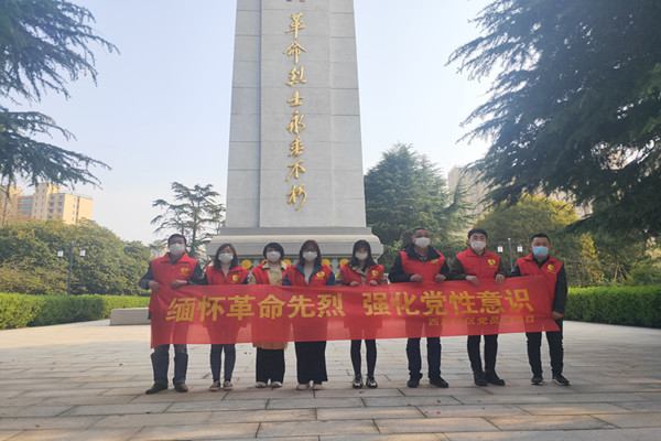 在雄偉莊嚴的革命烈士紀念碑前,黨員們排著整齊的隊伍,懷著無比景仰與感恩的心情,向革命烈士三鞠躬,并敬獻了花圈。