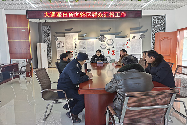 為構建和諧警民關系,加強派出所與街南村群眾的密切聯系,提升群眾的安全感,12月30日上午,大通鎮派出所民警周正源、陶松兩名同志主動來到街南村村民委員會向群眾匯報工作。