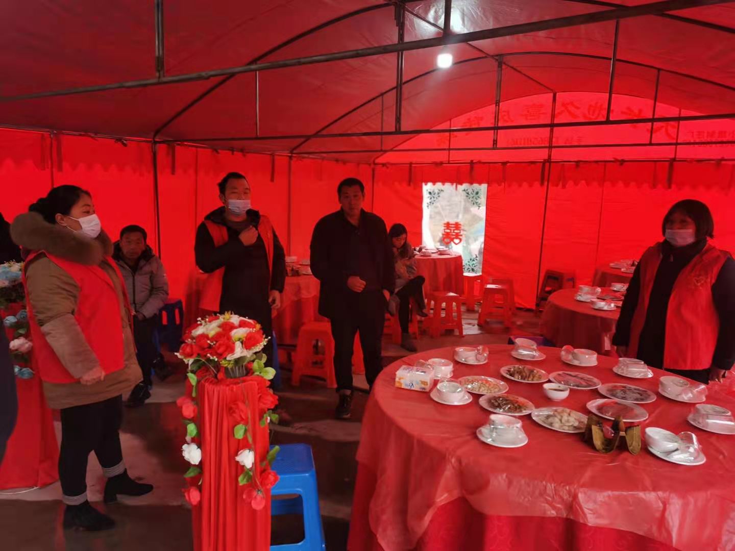2021年1月28日,蘇橋村兩委成員對申辦婚宴的農戶進行現場督查。該戶之前向村委會上報家中兒子結婚申報10桌,經現場督查只有5桌未違反上級政策。同時村兩委干部對現場人員宣傳近期疫情狀況嚴峻,建議大家不要走親訪友盡量待在自己家中。