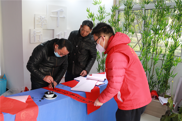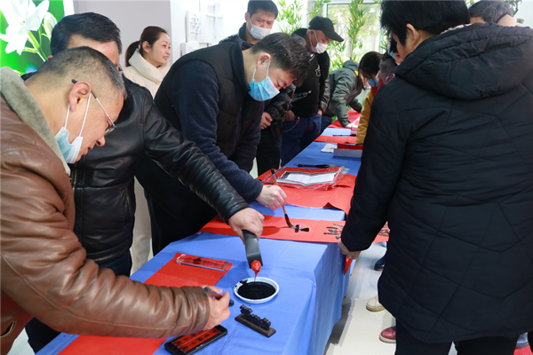活動現場筆墨飄香,書法家們各顯身手,揮毫潑墨,氣氛十分熱烈。一位居民說:“我們家已經好些年沒有貼過這種手寫的春聯了,這種手寫的春聯不僅內容好,寓意好,字更好,今年可以貼上這種春聯,年味更重了,非常感謝書法家們寫的春聯。”