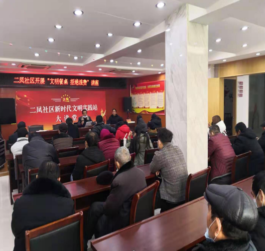 為了在全社會營造浪費可恥,節(jié)約光榮的餐桌新氛圍,拋棄原來鋪張浪費的陳規(guī)陋習(xí),二鳳社區(qū)于2021年2月5日下午開展“文明餐桌 拒絕浪費”主題活動。