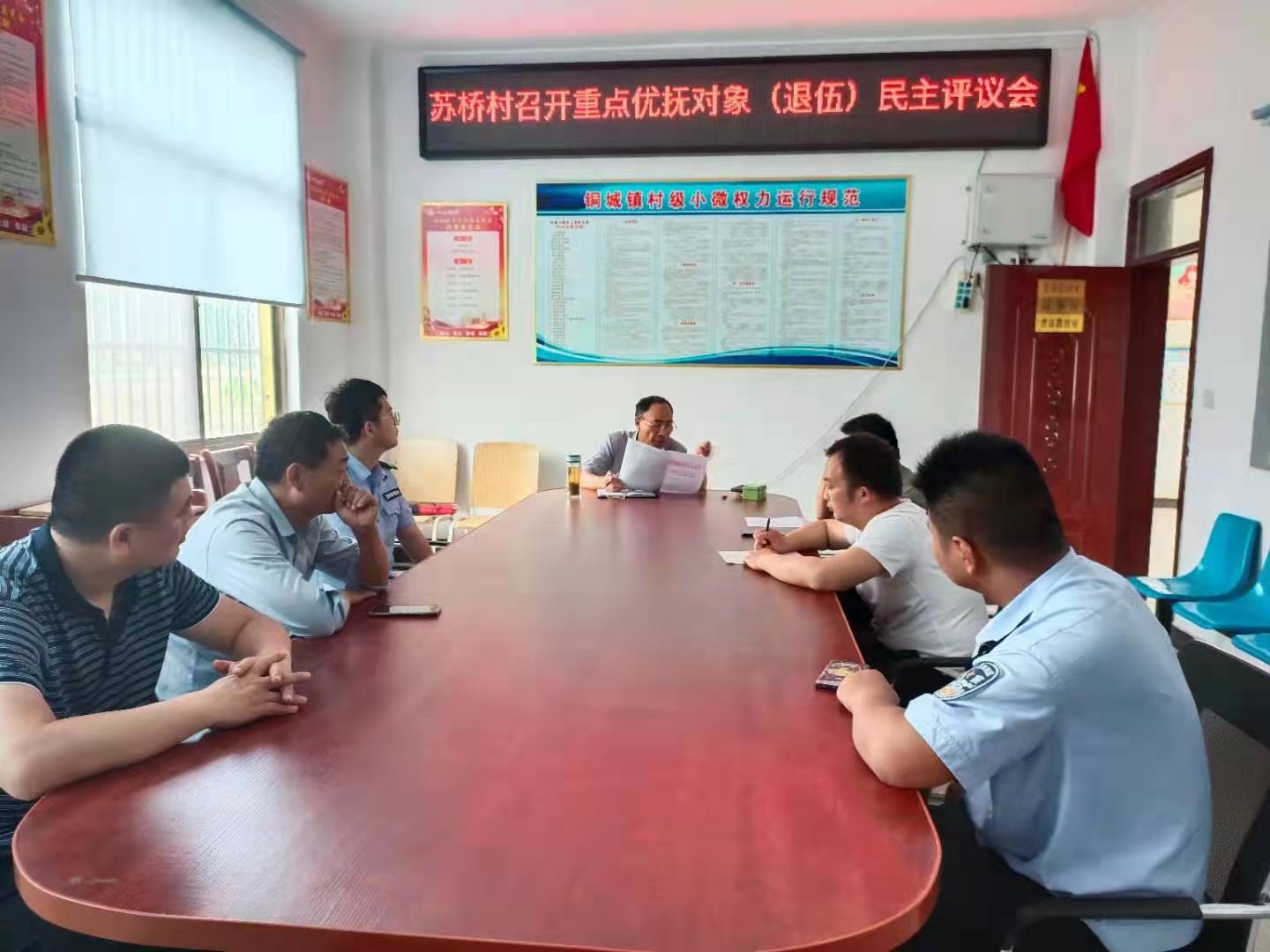 2021年6月8日,蘇橋村召開重點優撫(退伍)民主評議會,會議由黨總支書記主持,參會人員為兩委成員、黨員和部分村民代表。對全村退伍軍人進行全面的一次評議活動。