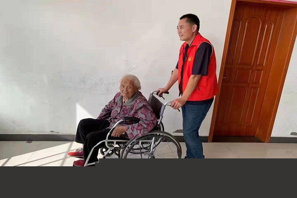 天氣晴朗,秋高氣爽,志愿者們一行先來到馬圩組烈屬李玉珍家中,由于老人出行靠輪椅,志愿者推著老人散散步,曬曬太陽,陪她聊聊天,并且幫她整理房間、擦桌子、洗碗等。