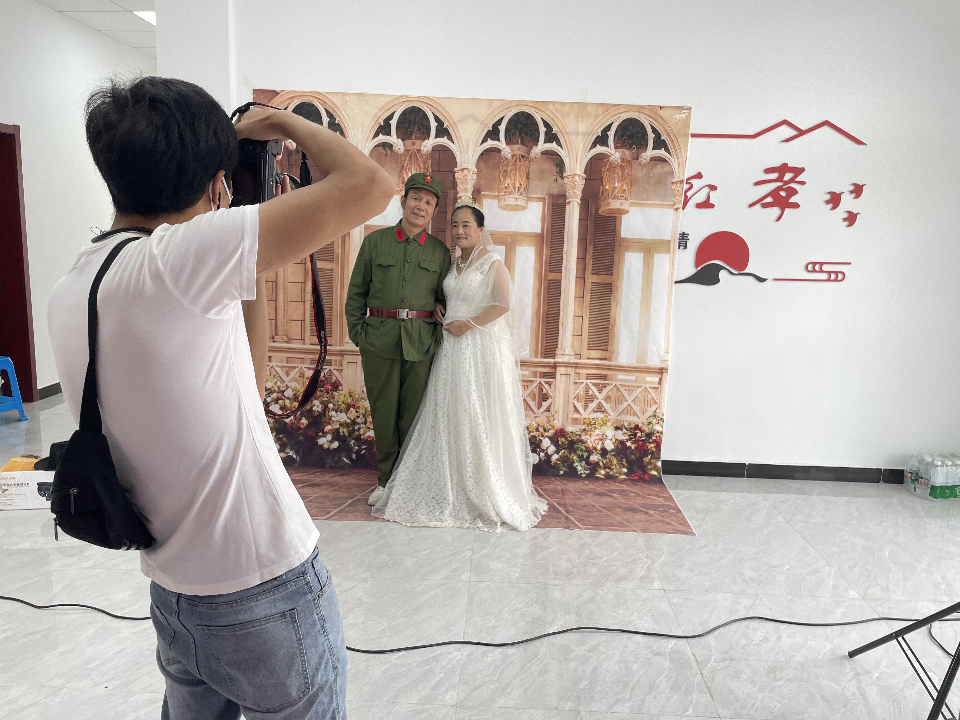 2022年7月26日上午,“愛心送進光榮門-公益攝影”拍攝組走進振興社區,弘揚中華民族尊老敬老的優良傳統,免費為退伍老軍人夫妻化妝、穿禮服講解拍攝技巧并用相機記錄下美好的瞬間。