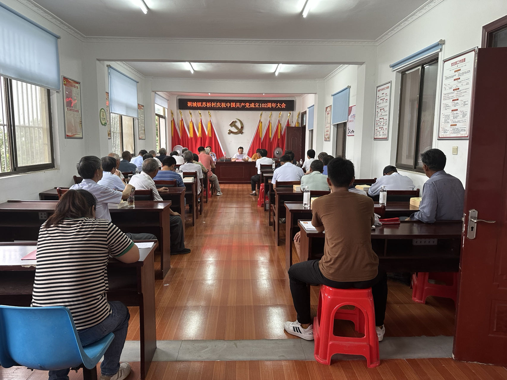 2023年7月1日上午,銅城鎮蘇橋村召開“七一”黨員大會慶祝中國共產黨成立102周年,會議主要議程如下: