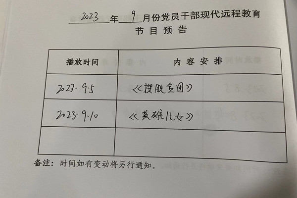 上一篇:雷莊村2023年8月份遠程教育播放計劃[ 08-01 ] 下一篇:雷莊村2023年10月份遠程教育播放計劃[ 10-01 ]