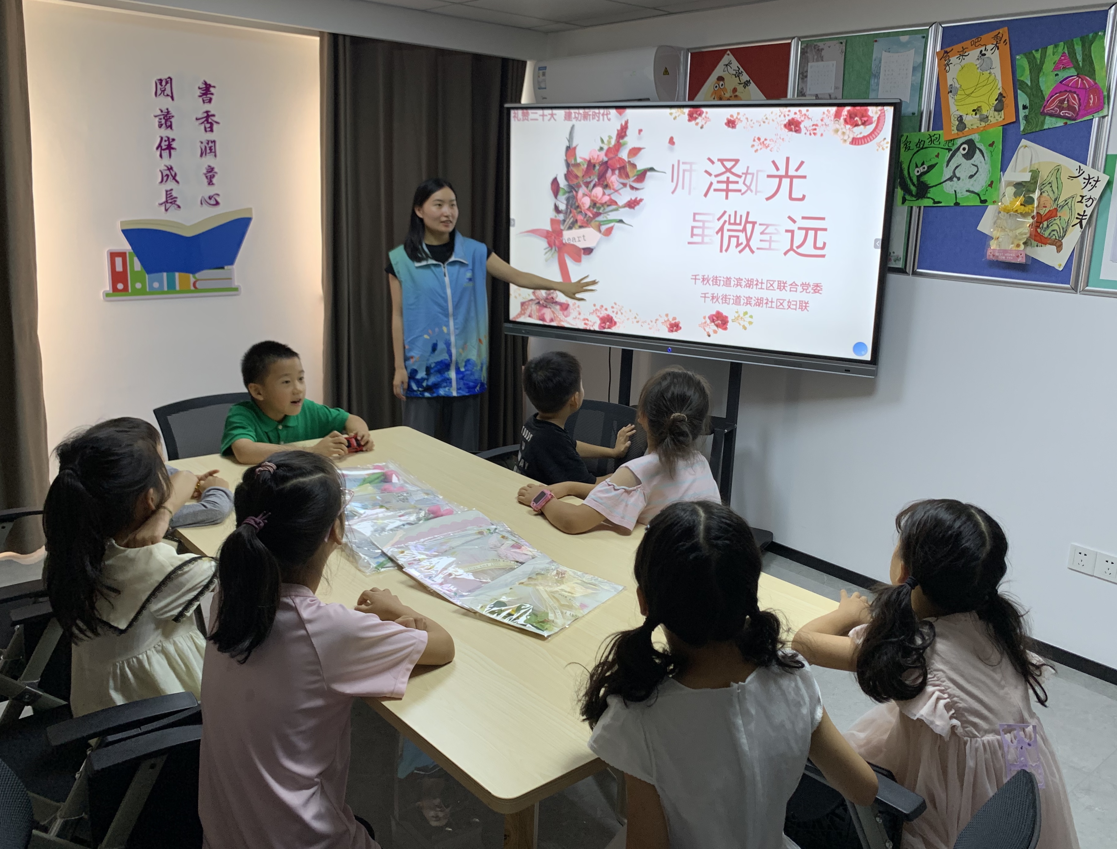 2023年9月10日是我國第39個教師節(jié),也是黨的二十大勝利召開后的第一個教師節(jié)。為深入貫徹習近平總書記在中共中央政治局第五次集體學習和在北京育英學校考察時的重要講話精神,千秋街道濱湖社區(qū)聯(lián)合黨委、婦聯(lián)組織轄區(qū)青少年開展“師澤如光,雖微至遠”教師節(jié)主題活動。
