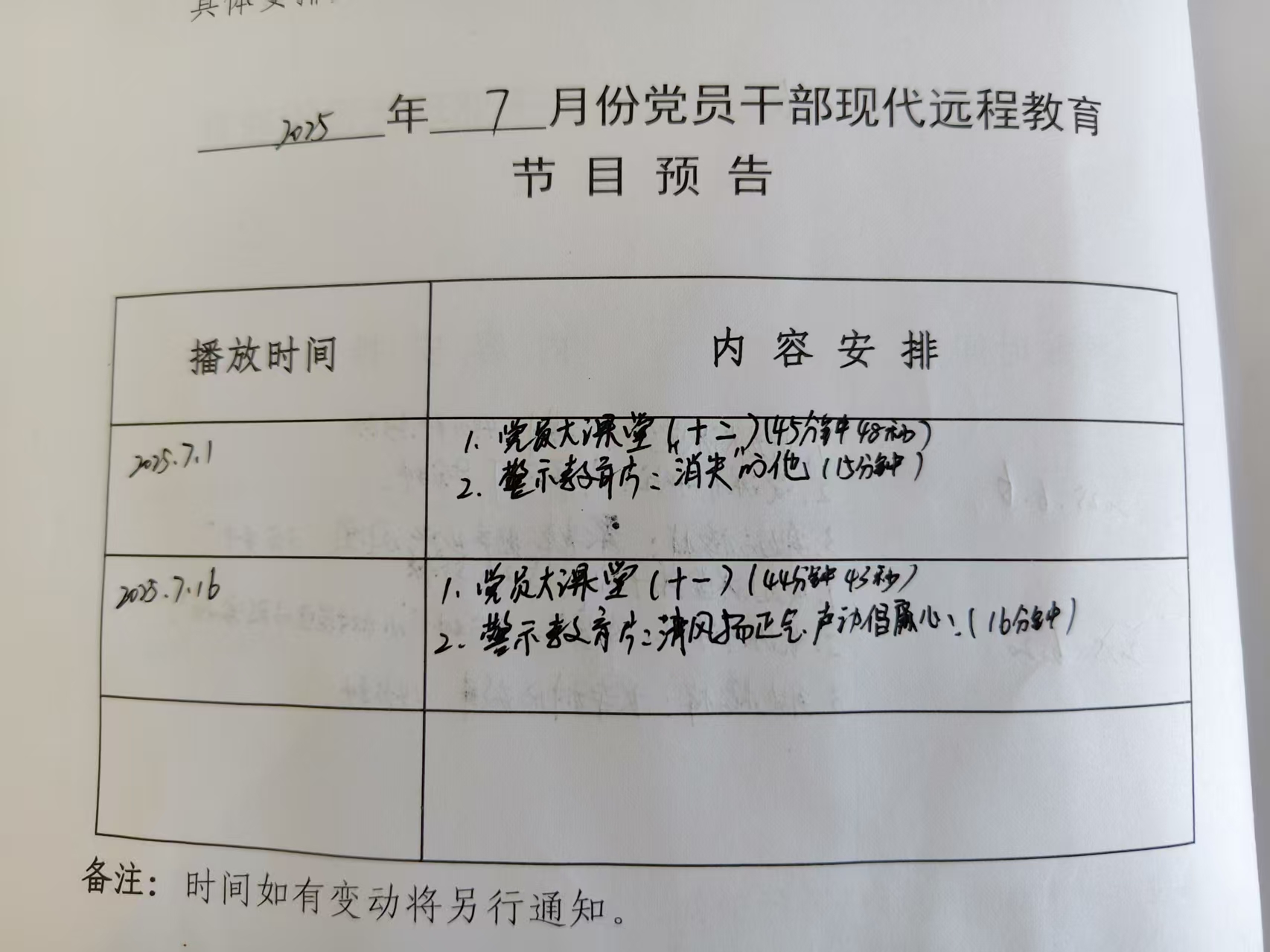 如上圖所示,請各位黨員按照計劃時間到村黨員活動室集中觀看。
