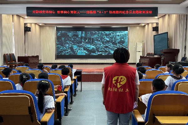 宣講結(jié)束后,鎮(zhèn)新時代文明實踐所的志愿者播放了抗戰(zhàn)電影《八佰》的經(jīng)典片段。銀幕上,四行倉庫的戰(zhàn)士們堅守陣地、奮勇抗敵的畫面震撼人心,子彈橫飛的戰(zhàn)場、戰(zhàn)士們寧死不屈的吶喊,讓同學們在9月3日這個紀念節(jié)點,直觀感受到抗日戰(zhàn)爭時期中華兒女為守護家國、抵御外敵所付出的巨大犧牲與不屈意志。觀影過程中,孩子們神情專注,有的悄悄擦拭眼角,有的緊握雙手,深刻體會到如今和平生活的來之不易。?