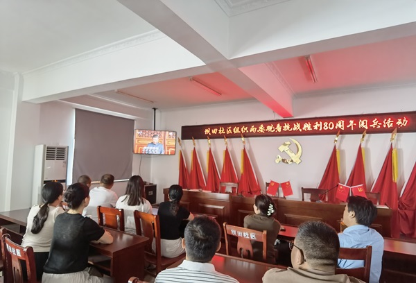 當日,大通鎮壩田社區積極組織社區兩委干部觀看了此次閱兵活動。社區兩委干部們齊聚一堂,懷著崇敬的心情,共同見證了這一莊嚴而神圣的時刻。閱兵式上,上萬名受閱官兵、數百臺(套)地面裝備、百余架戰機,編成 45 個方(梯)隊莊嚴接受祖國和人民檢閱。大家紛紛表示,通過觀看閱兵,深刻感受到了祖國的強大和人民軍隊的威武之師、文明之師的風采,也更加堅定了為社區發展、為實現中華民族偉大復興的中國夢而努力奮斗的決心。