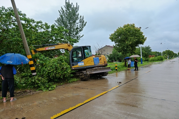 在田間地頭,挖機無法作業的地方,就組織群眾和干部一起拿鐵锨進行挖溝排水,在挖機可以作業的地方,則使用挖機開溝排水等措施疏通田間內部溝渠,打通入河排水干溝,保證積水順利排出。同時,龍集社區還積極協調解決抽水機進行強排,將田間積水排入溝渠,目前社區全域排澇站正在全天候作業,力爭將農田損失降到最低。