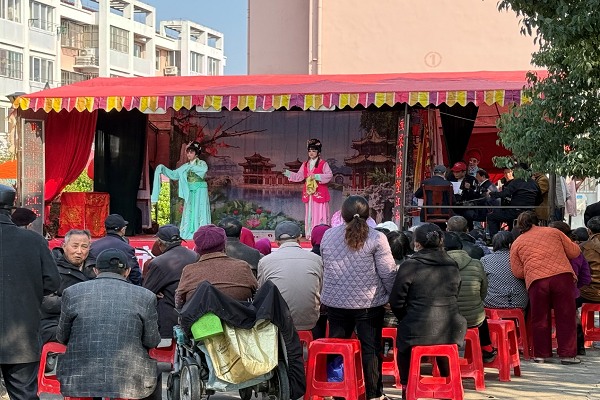 當日下午,小區廣場上鑼鼓鏗鏘,曲韻悠揚。一場經典的揚劇慰問演出《真假新郎》在此精彩上演。專業的演員們以精湛的演技、地道的唱腔,將劇情演繹得跌宕起伏、妙趣橫生。臺下座無虛席,老人們看得津津有味,臉上洋溢著幸福的笑容,掌聲與歡笑聲此起彼伏。這場演出不僅讓他們在家門口就享受到了高水平的文化大餐,更勾起了許多老漁民對地方傳統戲曲的深厚情感。